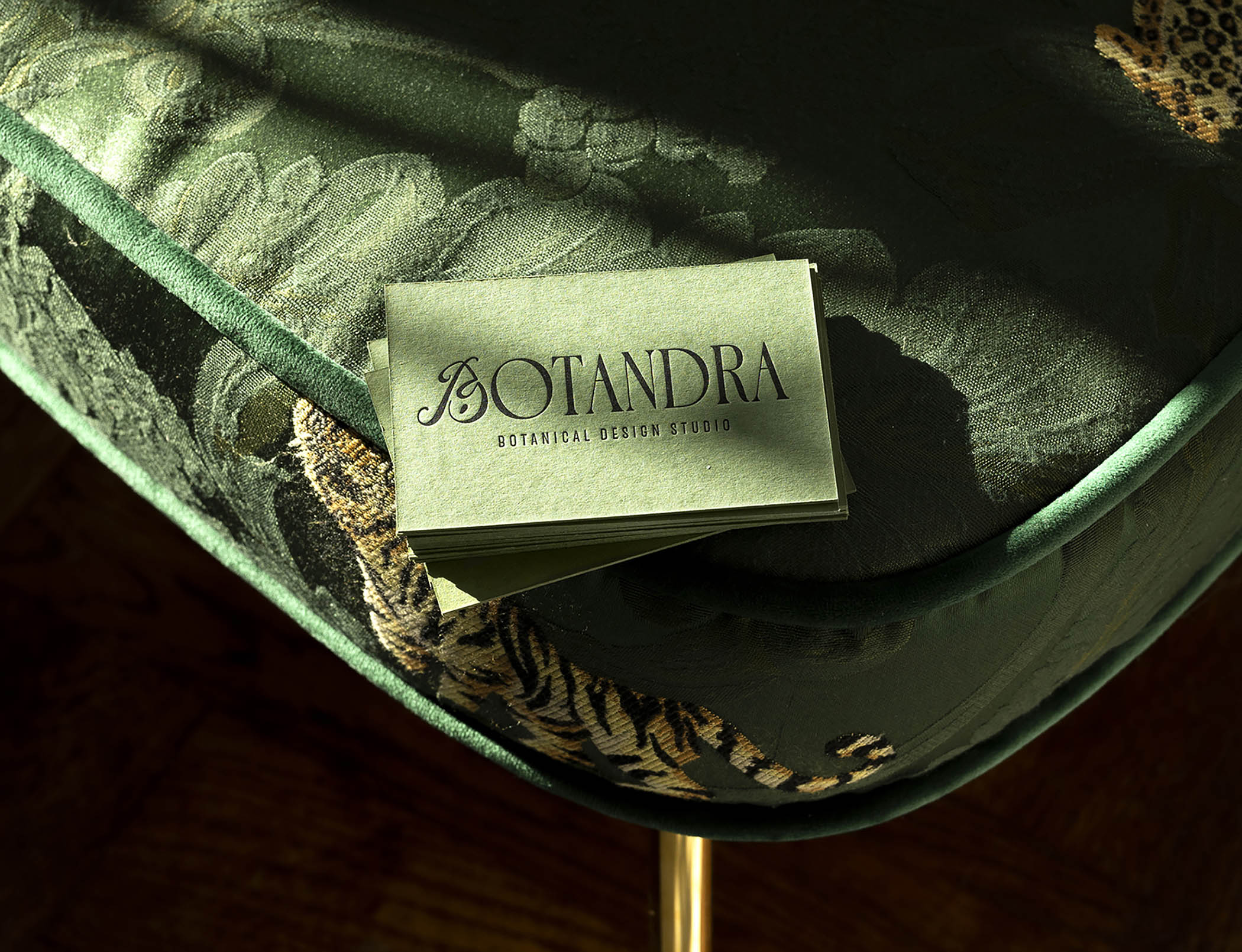 The company's philosophy of harmoniously blending nature and urbanity results in a nature-inspired corporate design based on a logo with a luxurious serif font, into which we integrated a monstera leaf-inspired B monogram, paired with a palette of different shades of green and small gold accents.